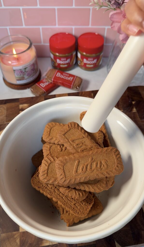 Step 1: First start by crushing the Biscoff biscuits into fine crumbs using a food processor or rolling pin.