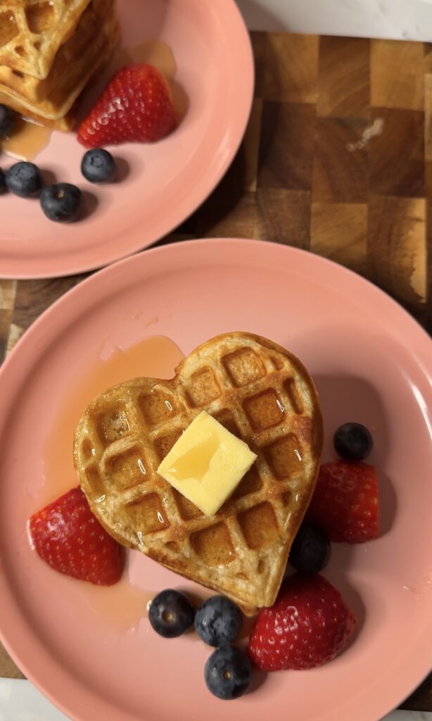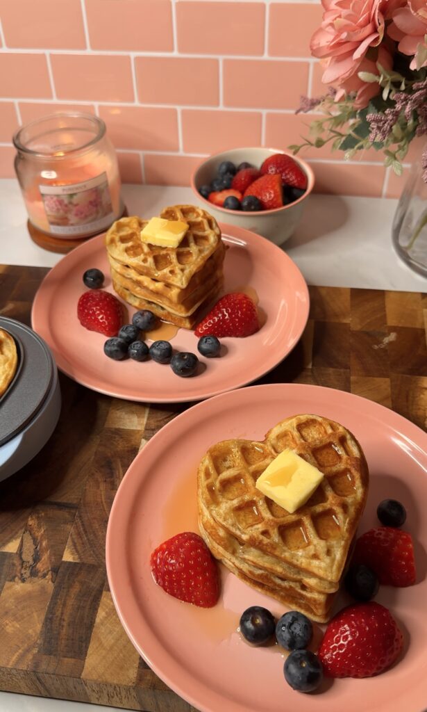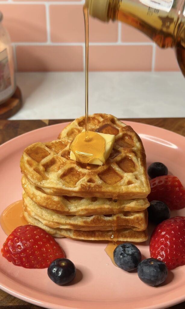 Lately I’ve fully been living in my soft girl era- just picture slow mornings, warm coffee, and making my breakfast way cuter than it needs to be. If you’re on that vibe too, you’re going to love these easy Valentine’s heart waffles. They’re fluffy, golden, and the easiest way to turn an ordinary morning into a cute little Valentine’s moment at home. Whether you’re making these for someone you love or just romanticising your own morning (as you should), this recipe is all about cozy, feel-good energy.
